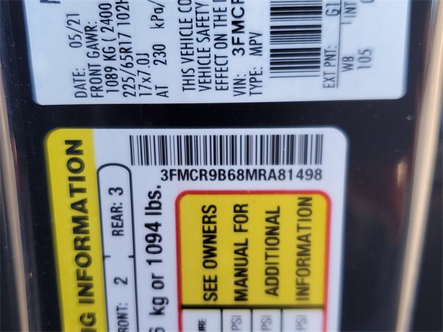 - VIN : 3FMCR9B68MRA81498